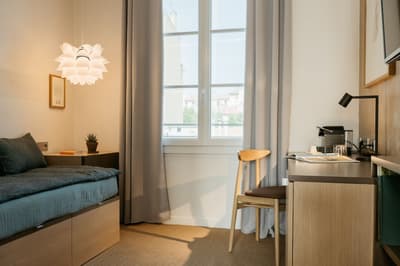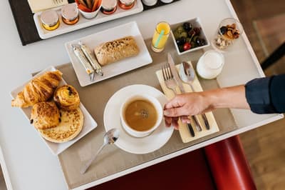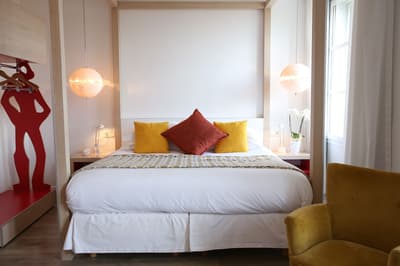 Vous cherchez la vraie adresse de charme à Aix-en-Provence ? Stop, la voici ! Le boutique hôtel Cézanne est une belle demeure d’angle à la déco chic et à l’ambiance intimiste. Tout y respire la poésie, le calme et l’art de vivre provençal. A deux pas du stylé quartier Mazarin, on s’y sent comme dans une maison de famille. Ici, vous vous servez vous-même une limonade locale ou un verre de vin dans le salon feutré. De quoi vous donner l’impression d’être un peu chez vous ! Dans les chambres, vous dormez comme un loir dans des draps en coton d’Egypte aux teintes toutes douces. Et quand il fait beau (souvent !), vous vous installez dehors dès le matin, sous le platane ou sous la pergola en terrasse, avec le doux bruit de la fontaine. Et un peu comme sur la place du village, vous tchatchez dès le petit déjeuner. Vous buvez votre café et vous vous régalez avec des smoothies, des tartes salées, sucrées et des confitures artisanales. Bref, le temps s’écoule tranquilou dans cet agréable patio. Allez, juste un dernier espresso avant d'aller vous aventurer dans les rues de la séduisante Aix-en-Provence. Tout est là, à quelques pas : musées, jolies rues, boutiques et restos.