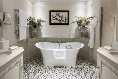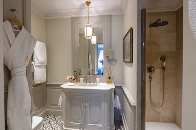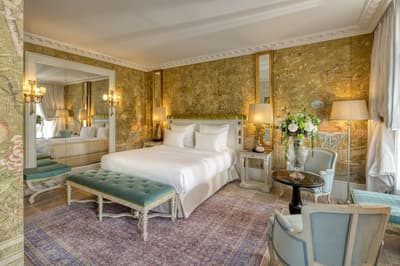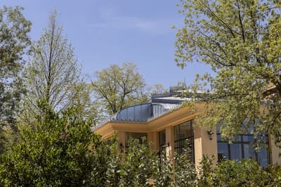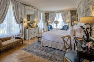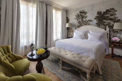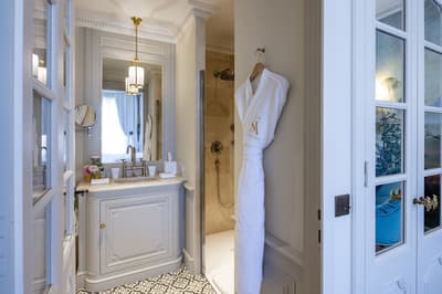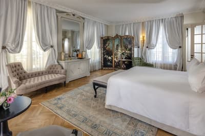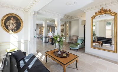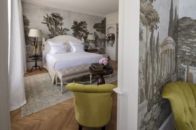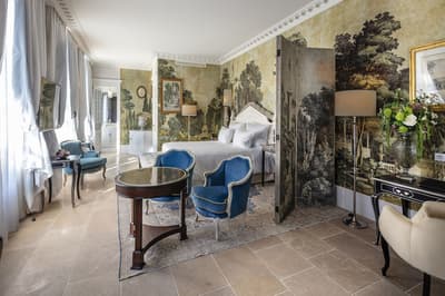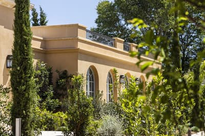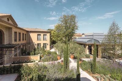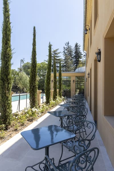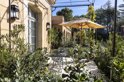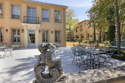 Il y a encore quelques années, c’était une bastide abandonnée dans un grand parc. Aujourd’hui, c’est un hôtel de dingue ! La maison d’origine a été totalement rénovée. Autour, on a construit d’autres bâtiments dans le style hôtel particulier du XVIIIe siècle; avec tout le tralala : lustres, rideaux de soie et portraits de famille. Avec ses moulures au plafond, la Villa Saint-Ange va jeter des paillettes dans votre vie ! Les chambres en mettent plein la vue, un peu comme si on remontait le temps ou qu’on pénétrait sur le tournage d’un film d’époque. C’est juste romantique à souhait ! Et dehors, il y a le jardin provençal, avec ses odeurs de garrigue et ses fontaines à l’ancienne. Mais l’atout de ce parc, c’est sa piscine qui semble interminable. Il y a de quoi faire de TRÈS belles longueurs ! On nous chuchote 28 mètres à l’oreillette… Le bain bouillonnant n’est pas mal non plus, sans parler des transats où il fait bon chiller, au soleil ou à l’ombre des grands pins. Côté bar et resto, c’est 5 étoiles comme le reste. On dîne dans un salon vitré, dans un décor d'apparat, avec maîtres d’hôtel en gants blancs, jolie porcelaine et argenterie signée Christofle. Tout ça à moins de 15 minutes à pied du centre-ville d’Aix-en-Provence. Dans cette Villa Saint-Ange, inaugurée en 2019, vous serez vraiment aux anges !