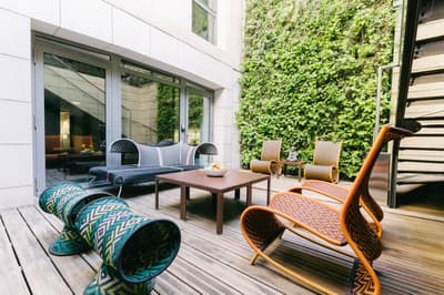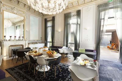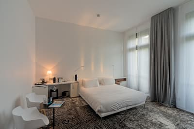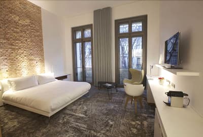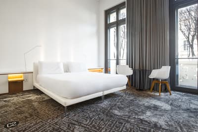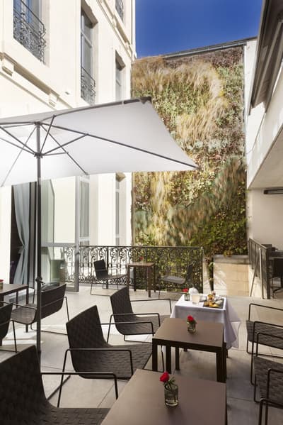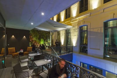 Dire que Marseille et Los Angeles se ressemblent beaucoup, c'est pas faux ! Et les driv’in et les routes qui s’entrelacent ne sont que la partie immergée du rocher. A Marseille, comme à LA, le secret règne, il faut le savoir. Et pour en être... il faut savoir. Et nous, vous voyez, on sait et du coup, vous, vous en êtes ! Non, parce qu' il est juste impossible, sinon, de savoir qu’un 5 étoiles se planque dans une ruelle de l’hyper centre, dans un immeuble du XIXe... Et que le lieu se paie le luxe immense d’avoir privatisé une île pour en faire une plage privée pour, tenez vous, 8 personnes dont un majordome et un cuisinier ! Mais ça, c’est l’été : le reste du temps, vous traînez au bar, car il y a toujours un jazzman qui maîtrise le piano à queue qui orne le hall — ou un bon DJ. Marseille est belle mais ne l’assume pas. Alors, oui, il y a un jardin, mais il est vertical, tout le long du mur. Il faut lever les yeux pour savoir que des anges vous regardent, ils volent au plafond. Et puis ces chambres ultra design : vous croisez la Bonne Mère et si vous regardez vos pieds, après quelques secondes de trouble, vous réalisez que la moquette est une œuvre d’art à l'effigie de la ville. Vous n’êtes pas au bout de vos surprises... Et si le mistral ne souffle pas aujourd’hui, vous irez boire un cocktail maison selon vos envies. Luxe, design, central. On est bien ?