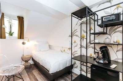Aussi bien situé qu'il soit, un hôtel ne fonctionne à plein régime que si l'accueil est au rendez-vous. Combo gagnant pour l'Arome, grâce à la gentillesse de ses propriétaires, Fabio et Fabrice, et à son emplacement à proximité de la Promenade des Anglais ! Mais l'établissement a aussi d'autres qualités, dont ses dix chambres décorées avec soin et un goût sûr à l'aide de mobilier contemporain. De quoi combler les fans du style néo-industriel ! Ce petit boutique-hôtel se niche dans une discrète maison niçoise du début 1900, derrière une élégante façade ocre. Situé derrière le Negresco, il vous permet de rejoindre très vite les plages où il fait bon chiller dès que les beaux jours sont là. Dirigez-vous ensuite d'un pas tranquille vers le Vieux Nice, histoire de vous régaler de petits farcis, soccas pissaladière ou autres spécialités de la ville. En terrasse, avec un verre de rosé, ça le fait ! Et n'hésitez pas à demander conseil aux gérants : ils aiment Nice et se feront un plaisir, presque un devoir, de partager leurs meilleures adresses et tuyaux. A l'Arome, on ne vous propose pas de vivre comme un Romain mais bel et bien comme un Niçois. Vous verrez : il y a pire, comme promesse...