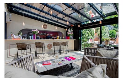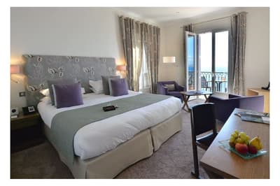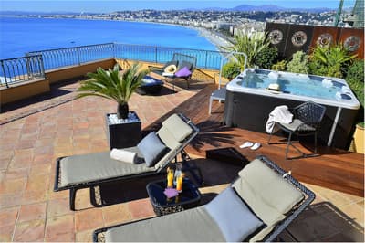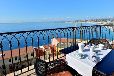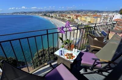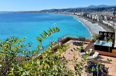Il y a des lieux magiques où on se sent un peu « king (ou queen) of the world ». Dans ce discret 4*, c’est une évidence : il y a des terrasses partout, parmi les citronniers et les palmiers, avec des panoramas sur la mer, la baie des Anges et son immense plage ! Ici, tout est parfaitement pensé et entretenu pour profiter de la verdure et pour que la Grande bleue en mette plein la vue, surtout depuis le solarium, le jacuzzi et même la salle de fitness sur le toit terrasse ! Enfilez une tenue fashion voire sexy, vous allez faire des selfies partout... L’hôtel, desservi par plusieurs ascenseurs, est adossé à la colline du Château, qui se jette dans la Méditerranée. Son emplacement élevé est idéal, à deux pas du port, de la vieille ville et du marché ! Faim ? Après quelques longueurs dans la piscine, attablez-vous au Patio, le resto ombragé. Simple au déjeuner, la cuisine fraîche et ensoleillée devient gastronomique le soir ! Quant aux chambres, leur déco classique est largement compensée par un bel espace et un bon niveau d’équipement. N’hésitez pas à choisir une gamme supérieure pour avoir le plaisir de voir la mer s’étaler sous votre fenêtre ! Nul doute que, comme l’illustre La Pérouse, vous sentirez grandir en vous l’envie de prendre le large...