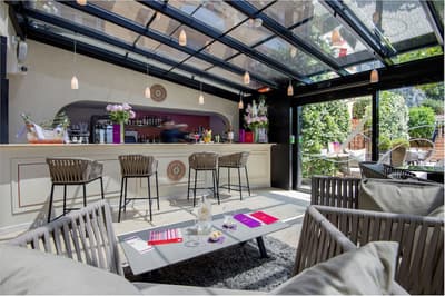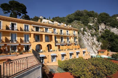 Sur le flanc de la colline du Château, donnant directement sur la Méditerranée, ce bâtiment ocre fait figure de trésor caché niçois avec piscine, restaurant et déco cosy.
