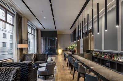 Plus qu’un boutique-hôtel, c’est un Small Luxury Hotel ! Vous avez de la chance, il n’y en a que 500 à travers le monde. Le BoHo est tout récent, il a ouvert il y a seulement quelques années alors attendez-vous à du luxe aussi récent que moderne. Tout d’abord, sa façade ressemble à une boutique haut-de-gamme avec ses teints marron et dorés et ses grandes vitrines, laissant entrevoir un intérieur chic et une décoration très industrielle. Et vous verrez, une fois l’entrée passée, c’est exactement ça ! Avec en plus, tout un tas de services dignes d’un cinq étoiles. Au bar-lounge -avec ses sublimes luminaires verticaux-, vous aurez droit à une dégustation de vins tous les soirs. Non loin de là, vous trouverez un coin bibliothèque pour travailler ou bouquiner, avec thé et café coulant à flot à longueur de journée. Enfin, si vous en avez marre de la lumière du jour (vous êtes peut-être un vampire, on sait pas), vous pourrez profiter, selon votre motivation, de la salle de sport ou du spa, sombre et doré. Alors installez-vous dans la piscine, fermez les yeux et laissez-vous envahir par le son relaxant de la cascade. Vous êtes dans un Small Luxury Hotel, vous vous en rendez compte ?!