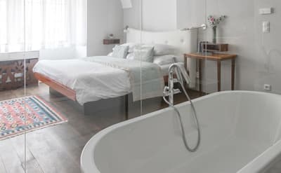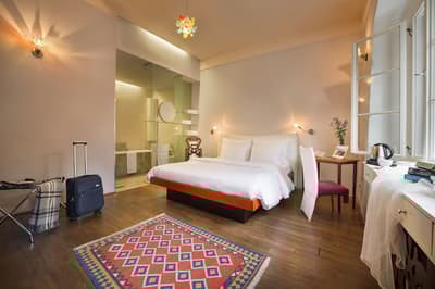 Cette belle chambre profite d’une belle vue sur la rue vibrante. Agréable et confortable, elle a tout ce qu’il faut pour un séjour superbe. C’est un petit nid douillet baignant dans une atmosphère sereine et reposante. Elle accommode un lit queen et dispose d’un coin salon meublé de beaux fauteuils. Salle de bain avec baignoire et douche à effet de pluie.