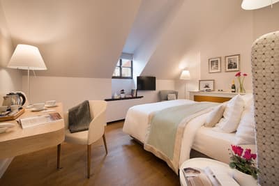 Bonnie & Clyde, c’est vous ? Les armes en moins ? Ou plutôt Jack & Rose, sans la fin tragique ? Que ce soit l’un ou l’autre, le Design Hotel Neruda vous propose une escapade romantique parfaite pour les couples en lune de miel ou anniversaire de mariage. Et puis, même sans événement ! Il n’y a pas de raison pour se faire plaisir. Dans une toute petite rue ascendante et calme à deux pas du château de Prague, vous trouverez ce petit boutique-hôtel à la croisée de l’ancien et du moderne. Le papier peint ressemble parfois à celui de chez Mamie mais peu importe, c’est quand même super romantique, que vous partiez sur les chambres standard ou design. Pétales de roses, bougies, lumières tamisées : vous aurez droit à la totale ! C’est vous qui choisissez. Petit-déjeuner au lit, paniers de pique-nique et même des massages en couple à l’aromathérapie. Vraiment parfait pour les couples qui veulent s’évader le temps d’un week-end. Avec un peu de chance, vous aurez même de la neige, la cerise sur le gâteau pour l’ambiance. En tout cas, chaque chambre est différente. Comme ça, vous pourrez revenir tous les ans sans même vous lasser ! Ingénieux, n’est-ce pas ?
