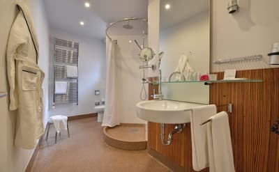 Encore plus spacieuse, c’est le top ! Agréable et confortable, elle a tout ce qu’il faut pour un séjour superbe. C’est un petit nid douillet baignant dans une atmosphère sereine et reposante. Elle accommode un lit queen et dispose d’un coin salon meublé de beaux fauteuils. Salle de bain avec baignoire et douche à effet de pluie.