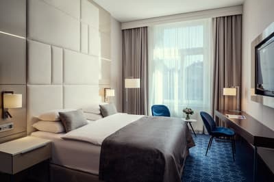 Dans un design net et moderne, elle comprend un mobilier tendance et se complète dans des tons doux. La chambre est dotée d’un lit king size ou de deux lits jumeaux avec matelas supérieur MATERASSO et literie de luxe Mühldorfer. La salle de bains est équipée d’une baignoire ou d’une grande douche à l'italienne à effet pluie. Le tout dans une ambiance cosy !