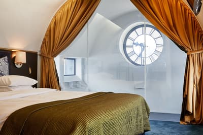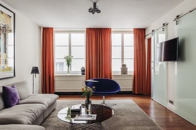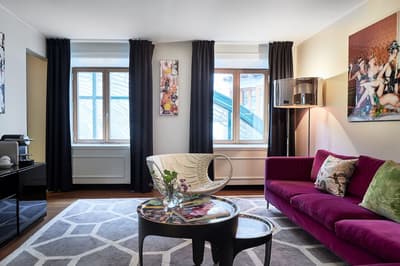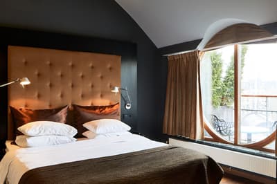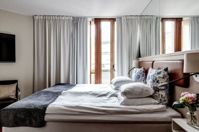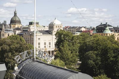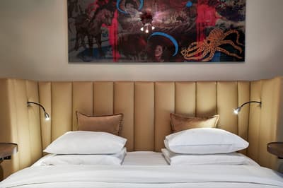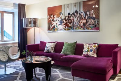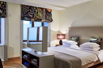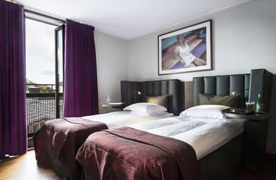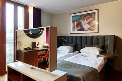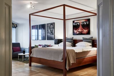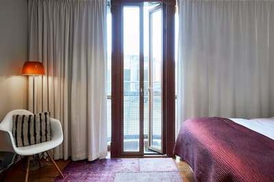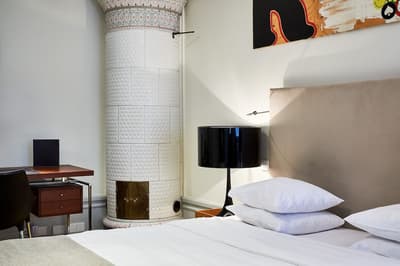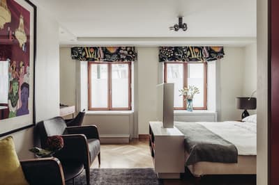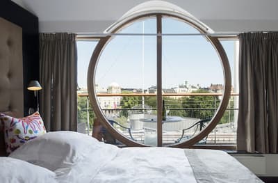 Reconnaissable entre toutes, la façade du Berns Salonger fait partie des monuments emblématiques de la capitale suédoise depuis 1863. Arcades néo-classiques, œils de bœuf et, surtout, un fronton semi-circulaire abritant une belle horloge, couronné de « Berns » en lettres lumineuses. Connu de tous, l'hôtel est un véritable lieu de rencontre, qui se vante d'avoir accueilli de Bill Gates au Dalaï Lama, en passant par Rihanna et Noomi Rapace ! Aussi éclectiques que les visiteurs, la déco et le style des hébergements varient de la petite chambre un brin désuète aux vastes suites ayant leur propre spa, éclairées de gigantesques lucarnes rondes donnant sur le parc Berzelii... Il paraît même que Philippe Starck a designé une chambre cachée ici... En tout cas, ce n'est pas un secret que Marlene Dietrich a utilisé la 431 comme loge en 1963 ! La chambre a gardé une atmosphère romantique, un peu différente des autres, qui mélangent allégrement un certain minimalisme scandinave avec des aplats de couleurs flashy, des motifs osés, du genre zèbre, des photos contemporaines. Un style vibrant, à l'image d'une vie nocturne légendaire.