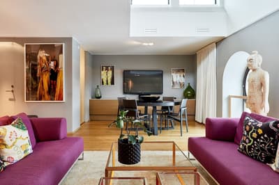 Luxueuse, elle est décorée avec un mélange d'antiquités uniques et de design moderne et se complète harmonieusement dans des tons chaleureux. La chambre est dotée d’un lit king size douillet et la salle de bains aérée en marbre est équipée d’une baignoire. Le tout dans une ambiance conviviale !