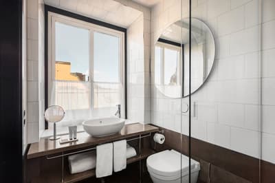 Accès gratuit au centre de remise en forme et au sauna, Internet haut débit sans fil gratuit dans tout l'hôtel, Conciergerie et service de chambre 24h/24, Le banc de fenêtre contient un minibar et un coffre-fort avec prise électrique, Sèche-cheveux, peignoir et chaussons, Produits de salle de bains de Byredo, Miroir intégral, Contrôle du climat, 20 % de réduction sur les cours à Remedy Stockholm, Wi-fi gratuit, Téléviseurs LED 43 pouces.