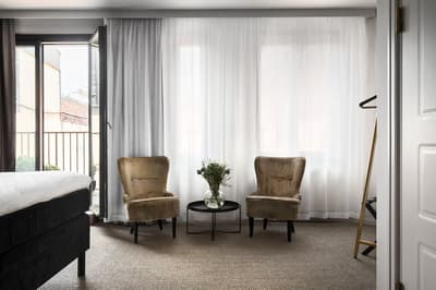 Cette jolie chambre peut donner sur la cour de l'hôtel ou sur la rue de Riddargatan que vous pourrez contempler du confort de votre chambre, tout en sirotant votre café du matin ou de l’après-midi.