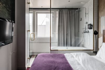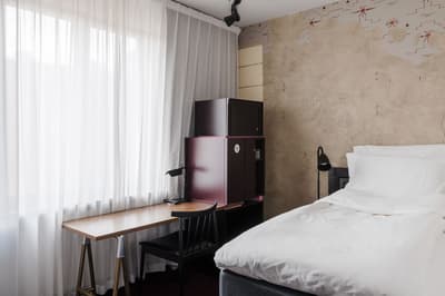 Stylée, sereine et incroyablement cool : Stockholm bien sûr, et en partie grâce à l'hôtel Story ! Des portes en guise de têtes de lit, des systèmes d'enregistrement automatique redoutablement efficaces et des chambres qui vous feront aimer les murs en béton : le Story Hotel est surprenant à bien des niveaux, dans une ville où la barre est déjà haute. C'est un refuge interurbain mélant un confort simple à un avant-gardisme assumé. Certains y reconnaîtront un style industriel-chic façon new-yorkais, ou bohème parisien, mais Story écrit son propre scénario suédois, imaginé par le studio Koncept. Papiers peints arrachés, clashant avec le lisse d'un carrelage immaculé, parquets originaux... Les Suédois jouent avec les matières et des contrastes maîtrisés pour créer une impression de « jamais vu » pourtant familière. Abandons artistiques en fil conducteur, des graffitis aux dessins négligemment accrochés au mur comme s'ils avaient été oubliés par le précédent occupant – un artiste, assurément ! Et aux mains du créateur de tendances Meshmesh Nildalen, la boutique de Story est un sanctuaire urbain pour les habitants de Stockholm et les citadins du monde.