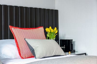 Chaleureuse, elle comprend une décoration raffinée signée Sybille De Margerie avec une belle moquette épaisse, un mobilier élégant, des accessoires design, des tissus soyeux et se complète dans des tons gris harmonieux. La chambre est dotée d’un lit queen size (160X200) et d’une literie d'excellente qualité. La salle de bains en marbre est équipée de toutes les commodités nécessaires. Le tout dans une ambiance chic et cosy !