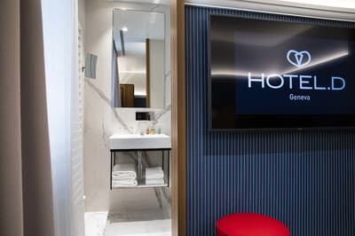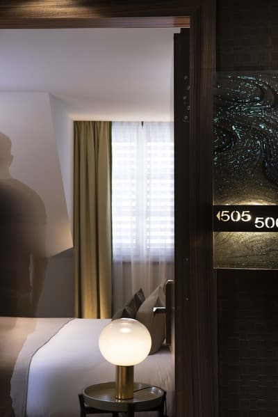 Attention, vous entrez dans un royaume design intimiste et cosy à souhait ! Ici, grâce à la célèbre décoratrice Sybille de Margerie, tout est douceur pour le regard et le toucher. Une vraie pépite ! Poussez la porte en bois discrète, encadrée de buis taillés en boule, de cet immeuble historique du quartier des Pâquis : derrière, le marbre noir est totalement hypnotique ! Et puis ces diamants, ces colonnes dorées, et surtout ces fauteuils façon scandinave qui vous attendent... : vous vous sentez tout de suite happé par l’énergie positive des lieux. Sur les tables et jusque dans la salle du petit déjeuner, vous trouvez une touche d’exotisme, avec de petits ananas disposés çà et là. Et question breakfast, vous allez totalement craquer sur les produits bio et frais proposés tous les matins, qu'on savoure entre des murs décorés de papier peint japonisant : un cadre hyper apaisant... Ici, vous séjournez dans la paix totale et pourtant en plein cœur de la ville, avec vue sur les toits dans les étages — canon ! Et grâce à l'accueil, absolument top, vous vous sentez vraiment privilégié. Idéal pour un voyage en amoureux !