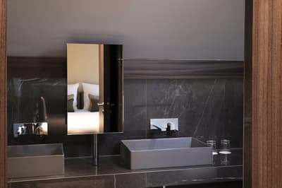 Chaleureuse, elle comprend une décoration raffinée signée Sybille De Margerie avec une belle moquette épaisse, un mobilier élégant, des accessoires design, des tissus soyeux et se complète dans des tons gris harmonieux. La chambre est dotée d’un lit king size (180X200) et d’une literie d'excellente qualité. La salle de bains en marbre est équipée de toutes les commodités nécessaires. Le tout dans une ambiance chic et cosy !