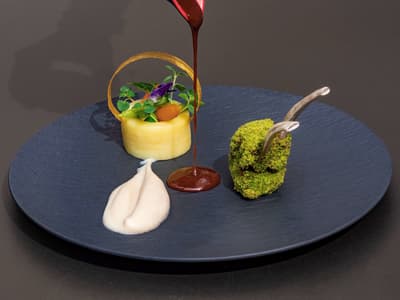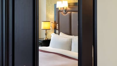 C’est un univers merveilleux qui vous attend à l’intérieur de l’hôtel Rotary Geneva MGallery ! L’élégance démarre dès l’entrée, avec cette porte vêtue d’une marquise en fer forgé. OK, l’indice est énorme : ici, c’est un temple de l’art déco ! Mais pas que. A l’intérieur, c’est un savant mélange d’années 30 et de club anglais, avec des fauteuils en cuir et des murs recouverts de cadres divers et variés. Chaque détail compte ! Dans le lobby, vous découvrez une partie bar ultra-cosy, avec des bibliothèques pleines de vieux livres reliés de cuir et des meubles chinés, qui donnent au décor un caractère classique et une douceur incroyable. Le tout rehaussé de nuances de bleu, du céladon au canard. Et de quelques touches plus modernes, comme ces chaises transparentes et ces tabourets sixties. Vous retrouvez ce dialogue des genres dans les chambres. Vous vous croirez dans un palais de princesse des Années folles avec cette moquette bleue texturée et ces élégants motifs de paon aux murs ! Bref, un lieu vraiment cosy, où vous aurez aussi le plaisir de profiter d'une cuisine raffinée aux influences internationales, servie sur une jolie terrasse aux beaux jours. Idéal pour une escapade en amoureux !