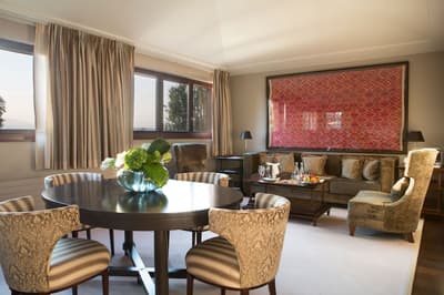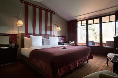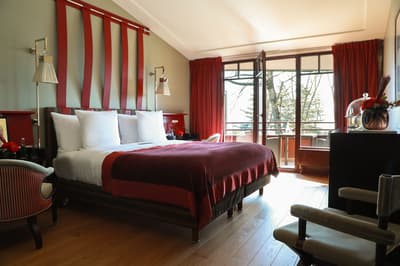 C’est un refuge haut de gamme qui vous attend à l’hôtel-spa 5 étoiles La Réserve Genève. Le cadre est juste incroyable ! L’endroit a été pensé comme une réminiscence d’un paradis perdu, et c’est franchement réussi. Loin de l’agitation de la ville, vous profitez d'une vue dingue sur le majestueux Léman et les montagnes. Et puis ce lieu est hors du temps ! Derrière le mur de briques et les énormes flambeaux qui brûlent, le lobby chaleureux donne le ton, avec ses velours rouges et ses fauteuils club en cuir fauve. Ici, c’est cocooning à souhait et ressourcement intense. La cheminée, qui ronfle au-dessus d’un tapis léopard et d'un parquet foncé au charme fou, va totalement vous envoûter... Vous n’aurez qu’une envie, vous installer ici pour profiter d’un verre de vin ou d’une tasse de thé brûlant. Mais vous êtes loin d’avoir tout vu : l’extérieur est juste hallucinant avec son parc de 4 hectares ! Vous aurez une piscine de 27 mètres à dispo, entourée d’un jardin taillé au millimètre avec ses buissons au carré. Il fait moche ? Pas de souci : au spa, une deuxième piscine de 15 mètres vous attend ! Et pour ne rien gâter, c’est kids-friendly ici ! Taillée sur mesure pour les enfants, la "Petite Réserve" leur propose une cabane dans les arbres et des jeux dedans et dehors. Le pied pour les parents, qui peuvent s’offrir une parenthèse en tête-à-tête dans l’un des quatre restos de l'hôtel ! Sinon, même dans les chambres, c’est tapis rouge pour les bambins avec un univers Lodge africain. Tapis lion, tipi, chaise éléphant et gros coussins doudous d’un côté, gastronomie ou massage signature de l’autre... La Réserve, c’est le paradis pour tout le monde !