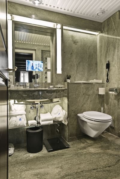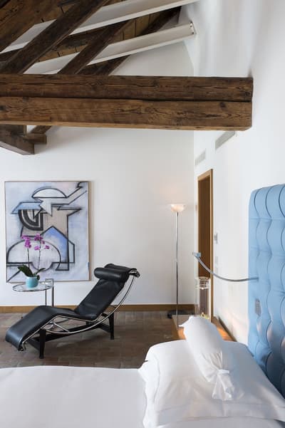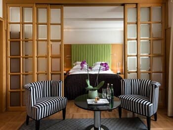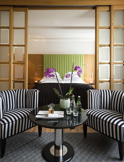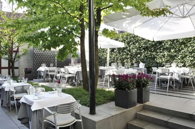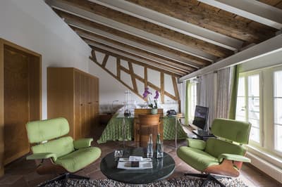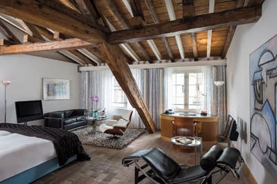 Imaginez... Votre hôtel s’étire sur neuf maisons médiévales du XIIe siècle en séjournant au Widder Hotel ! Et vous êtes sur un site qui abrite des ruines romaines et celtes ! Autant dire que l’énergie des lieux est juste incroyable. Les bâtiments sont sublimes avec leurs fresques du XVe siècle : impossible de ne pas tomber sous le charme de cet hôtel au coeur de Zurich. Chaque maison est interconnectée et révèle une façade majestueuse d’une fraîcheur surprenante. Vous êtes vraiment au cœur d’un lieu à la fois atypique et authentique ! A l’intérieur, les meubles du Corbusier côtoient des oeuvres originales d’Andy Wharhol ou d’Albert Giacometti, avec des parquets en bois hallucinants, des poutres et des murs d’origine à l’âme intact. Quand vous rentrez ? C’est justement ce contraste entre moderne et ancien qui vous frappe ! Poêle récent, murs multi-centenaires, lampe futuriste, dalles géométriques et fauteuils en cuir très 80’s : le charme opère tout de suite ! Posez vos valises dans l’une des chambres sublimissimes, où le bois reste omniprésent et apporte une chaleur intense. On adooore le contraste colombages apparents et style contemporain avec des escaliers en verre, par exemple. Toutes les chambres ont un style très différent ! Vos valises posées, lovez-vous auprès de la cheminée avec un thé ou crapahutez jusqu’au jardin Widder, petit refuge bucolique en plein coeur de Zurich. On y passerait des heures ! Et les petits déjeuners sont à tomber, en plus... Un lieu digne d’un conte de fée, entre modernité audacieuse, douceur et ancrage dans le patrimoine local !