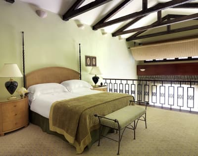 Lumineuse, elle dispose de grandes fenêtres à pans de bois pour profiter des sons et des senteurs du jardin ou des rues pittoresques. Elle comprend un coin salon avec bureau, chaise et bar réfrigéré pour allier travail et plaisir.