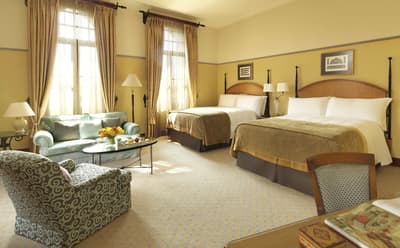 Spacieuse, elle peut offrir une vue imprenable sur la cour paysagée, le jardin extérieur ou les rues que vous pourrez contempler depuis les grandes fenêtres de votre chambre, tout en dégustant une bonne tasse de café. Elle est dotée d’un salon confortable orné de tableaux avec des fauteuils douillets pour vous détendre et recevoir vos invités.