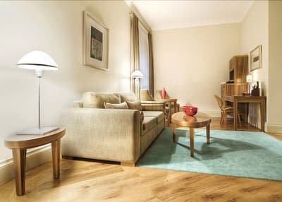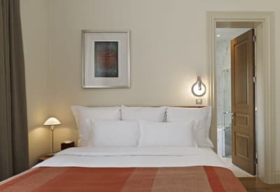 Elle est dotée de meubles sur mesure, d’un parquet en bois massif.et les caractéristiques architecturales du bâtiment sont préservées grâce à de hauts plafonds. Elle comprend également des œuvres d’art modernes et traditionnelles telles que des gravures, des peintures, des tapis faits à la main et des céramiques qui projettent le caractère unique et l’histoire historique. La chambre peut être dotée d’un lit king-size ou de lits jumeaux avec une literie de qualité et la salle de bains en marbre Carrera est équipée d’un chauffage au sol et d’une douche à effet de pluie séparée. Le tout dans une atmosphère chaleureuse !