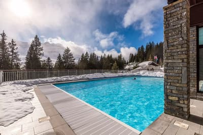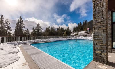 Tout simplement la plus belle vue sur le massif du Mont Blanc ! Voilà ce qui vous attend dans cette résidence premium située à 15 minutes à pied du centre de Flaine ! Ouvrez les yeux et respirez un grand coup ! Vous êtes au cœur des Alpes, à 2 500 mètres d’altitude. Le panorama est à 360° sur les massifs du Mont Blanc, des Aravis, de Belledonne et du Jura. Rien que ça ! Flaine n’est peut-être pas la plus belle station qui soit, mais l’endroit est carrément magique si vous aimez skier, marcher ou faire de la randonnée ! La résidence les Terrasses d’Eos se situe dans le haut de la station, dans un cadre magnifique. Les deux grandes bâtisses à l’architecture traditionnelle en pierre et bardage de bois sont nichées dans un écrin de verdure. Devant vos yeux émerveillés, le spectacle est majestueux, entre vallée préservée et montagnes couvertes d’épicéas ! Et ce n’est pas tout ! Les parties communes sont aussi chaleureuses que colorées et l’accueil extrêmement attentionné. Vous rêvez d’un nid douillet avec vue sur les sommets ? Banco ! Les apparts sont spacieux et lumineux, et leur grande baie vitrée s’ouvre sur un balcon aménagé. Le ski est bien sûr le sport roi, avec les pistes juste à côté, mais l’endroit vous propose mille et une autres activités. Notamment un pass disponible en juillet et août pour savourer pleinement la montagne en été. Le top pour occuper vos bouts de chou pendant que vous profiterez de la piscine extérieure chauffée !