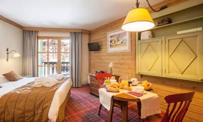 Laissez Bourg-Saint-Maurice derrière vous, pour mieux vous élever jusqu’à ces 1950 mètres de terres promises posées au cœur de Paradiski ! Non, vous n’avez pas la berlue. Pour un peu, et vous vous croiriez à Mont Tremblant, au Canada ou dans un parc d’attractions ! Garez-vous. Le parking ? Gigantesque ! Et cette figure amie qui non seulement vous donne les clés de votre logement, mais en plus vous oriente vers la bonne sortie. Vous auriez bien apprécié l’aide d’un valet, car si vous l’avez choisie, cette version Premium, c’est pour le niveau des prestations. Et il faut bien l’avouer, pour son côté hameau de conte de fées, avec ses huit résidences, charmants chalets aux façades de bois et de pierre, aux toits de lauze et enguirlandés de balcons. La vôtre ? Le Manoir de Savoie, bien pratique avec son accès direct au resto pour la ½ pension. Spacieux, l’appart... Et les lits sont faits. Un coup d’œil au placard : café, sucre, sel, lait… il y a même un kit pour les étourdis. Les lambris sont de la partie, la cuisine bien équipée. Une conciergerie et un espace bien-être avec sa piscine extérieure. Les enfants piaffent, allez vous balader ! Ici, c’est 100 % piéton, alors laissez vos bambins déambuler en tout sécurité pendant que vous allez vous ravitailler. De boutiques de luxe en restos, de bars en échoppes de produits régionaux, vous aurez tout le loisir de papillonner. Hop, les kids, direction le Cariboo's Club, pour un programme bien chargé entre randos botaniques en été et cours de ski en hiver. Et si le temps est trop gris, atelier peinture ou pâtisserie ! Pendant ce temps là, à vous le free-ride ou le massage à deux : et pour la vue, c’est le Mont-Blanc !