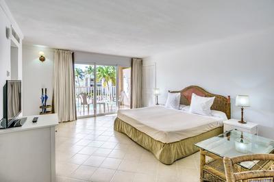 Elle bénéficie d’une décoration simple et cosy et la chambre comprend un lit King size et un mobilier moderne. Dotée également d'un espace chambre-salon et d'un coin penderie-dressing. La salle de bain est équipée d'une douche et l’ensemble se complète dans des tons clairs. Le tout dans une ambiance chic et tropicale !