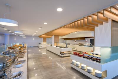 Voilà le genre d'hôtel qui va vous faire pousser des Ôlala, des Shebam, des Pow, des Blop et des Wizz ! tous les trois mètres. Installé à flanc de colline, dans un cadre Instagrammable à souhait, le bien nommé Ôclub Experience Grand Hotel Holiday Resort vous propose une expérience qui restera gravée dans votre lobe frontal. Equipé de tous les indispensables, ce club 4* crétois vous permettra de passer des vacances fort sympathiques entre amis ou en famille. Imaginez un peu : cinq piscines et presque autant de toboggans, des séances de bronzette sur les transats, des restaurants en veux-tu en voilà, une animation qui décoiffe et mille et une activités à tester entre deux siestes ombragées. Si le coeur vous en dit, n'hésitez pas à larguer les amarres sur terre ou en mer pour aller découvrir celle que l'on surnomme "l'île des Dieux". Impeccablement situé à 2,5 km d'Hersonissos, l'hôtel est proche de la ville sans en être trop rapproché. Accéder à la plage vous permettra de faire un peu d'exercice car celle-ci a élu domicile à quelques 500 mètres (notez que vous pourrez également choisir de la rejoindre en voiture !).