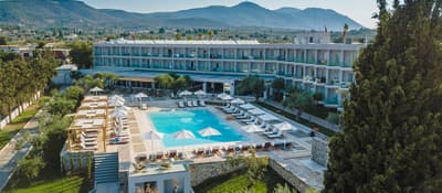 Vous, vous appréciez de faire la fête… mais juste ce qu’il faut : vous aimez aussi profiter de votre tranquillité… mais sans vous ennuyer. Et si vous aviez trouvé ici le juste équilibre ? Et en version all inclusive, en plus ? C'est en bord de mer forcément, à Eretria plus exactement. Une entrée d’hôtel club classique. Du blanc, naturellement, on est en Grèce ! Bon, on est un peu loin de l’adorable village photogénique à instragramer, le bâtiment qui s’étire, comme un chat paresseux, reste un peu mastoc en dépit de ses deux étages. Pourtant, le lobby produit déjà son petit effet. Plutôt classe, avec son comptoir blanc, son sol en marbre, son mobilier design. Un poil froid peut-être. Mais c’est pour mieux vous surprendre côté chambre : là encore, une ambiance épurée, tout en teintes douces, mais réchauffée par le bureau en bois, de jolies suspensions en osier et des coussins élégants. Allez sur le balcon. Pour l’instant il n’y a que le regard que vous plongerez dans la piscine ! Il y a même un bassin pour les kids. Avant d’aller dîner, ne résistez pas, la plage est à 5 minutes à pied ! Ah, il y a aussi des bungalows, pratiques en famille. Bon, ce béton, c’est un peu chargé, non ? Par contre, le jardin est tout soigné. La mer enfin, et cette plage de sable et de petits cailloux, toute tranquille, avec son armée de transats soigneusement alignés... Cool le bar pour un cocktail devant le soleil couchant ! Ce soir, on fait la fête, c'est convivial chez Coralia. Et demain ? Relax Honey, les enfants sont au Club Kids toute la journée et la plage est surveillée : on aura tout le temps, pour jouer, nager, et se reposer... Ici, les vacances, c'est sans prise de tête et selon les envies !