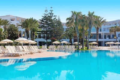 Regardez cet oiseau en plein atterrissage au-dessus de votre lit ! Une jolie métaphore de votre propre atterrissage au Maroc, non ? A moins que ça n’ait rien à voir. Les cours de français nous ont peut-être poussé à surinterpréter tout et n’importe quoi... Maintenant, par où commencer ? Au milieu de cet hôtel en U, face à l’océan, vous trouverez les deux piscines. On y voit, au choix, une fleur ou bien Ti Biscuit de Shrek. Pardon, de la surinterprétation, encore ! Par contre, le soleil se couche juste en face, vous en avez de la chance ! Mais ne restez pas là, une panoplie d’activités vous attend. Eh oui, Kappa Club, on a la garantie de ne jamais s’ennuyer ! Côté infrastructures, vous retrouverez courts de tennis, salle de sport ou encore spa de luxe. Cours de cuisine locale, préparation de thé à la menthe et atelier henné sont également possibles. Puis, une fois la nuit tombée, les spectacles fusent pendant que la piscine s’éclaire d’un bleu lagon et que des guirlandes lumineuses sur les palmiers volent la vedette aux étoiles. Même les enfants sont servis avec un kids club conséquent ! N’oubliez pas pour autant d’aller vous promener le long de la marina d’Agadir ou dans le centre-ville. Ah, vous ne voulez pas quitter les géniaux animateurs Kappa ? On vous comprend ! C’est pour ça que des excursions avec eux existent… Comme ça, tout le monde est content !