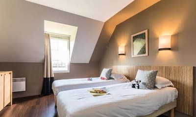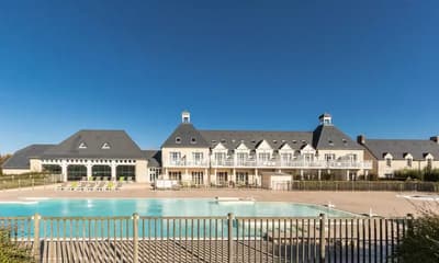 Vous hésitez entre la mer et la campagne ? Pourquoi ne pas choisir les deux ? Pour le côté champêtre, la Résidence le Green Beach est nichée au beau milieu de 7 hectares de paysage verdoyant au look typiquement normand. Avec en plus un accès direct au très chic golf d’Omaha Beach. Vous voulez mettre les pieds dans l’eau ? Quelques minutes de voiture suffisent pour rallier des kilomètres de côtes préservées et découvrir les mythiques plages du débarquement. A seulement 1 km du joli village de Port-en-Bessin, bienvenue dans un spot paisible, idéal pour les familles et les amateurs de séjours reposants. Les bâtiments s’intègrent harmonieusement au paysage normand : façades en pierre, volets en bois et toits en ardoise. L’accueil est hyper sympa avec plein de conseils de visites. Que vous ayez opté pour un appartement ou une maisonnette, tous les hébergements disposent d’un balcon ou d’une terrasse avec vue sur le parcours de golf. Votre swing est moins bon que votre dos crawlé ? Ça tombe bien ! Le Green Beach vous propose deux piscines chauffées dont une intérieure, ouverte à l’année. Avec un solarium et un sauna en libre accès. Le petit plus ? Les hébergements de la catégorie supérieure disposent d’une piscine privative en été. Vous trouvez aussi des terrains de volley et de pétanque juste à côté. Les alentours regorgent de sites historiques et de points d’intérêts. Le top pour conjuguer farniente et musées !
