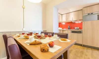 Une résidence bien placée en centre-ville, juste ce qu’il faut pour dormir et se préparer des pique-niques. Et même bébé aura son kit à l’arrivée !