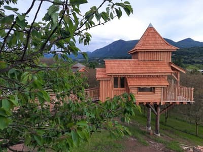 Vercornoix. Au premier abord, ce mot ne nous parle pas vraiment. Il fait éventuellement penser à Vercingétorix... Et puis, en creusant un peu, cela coule de source : nous sommes dans le Vercors, et il y a des noix ! Bienvenue dans la communauté de communes du Royans-Vercors dans le département de la Drôme, à Saint-Jean-en-Royans, entre Valence et Grenoble. C’est ici, à l’ombre des noyers, que se nichent quatre roulottes et trois cabanes dans les arbres pour un séjour insolite au pays des grottes, des rivières, des cascades et des majestueuses falaises. Ambiance bohème ou Robinson garantie, en couple dans les roulottes ou en famille dans les cabanes ! L’occasion de découvrir les produits à base de noix du propriétaire directement élaborés sur place, tout comme l’électricité, grâce aux toitures photovoltaïques. Ensuite, c’est le Vercors qui s’offre à vous, un terrain de jeux fantastique, paradis des randonneurs, spéléologues et aventuriers en tous genres ! Un séjour insolite en pleine nature au pied des montagnes, prolongé par des activités originales telles que le sauna finlandais, le bain nordique et la balade en rosalie pour explorer les alentours à la force de vos mollets ! De quoi se mettre en appétit avant de se faire livrer son gratin de raviole de Royan dans son cocon douillet !