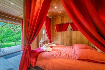 Direction le grand nord sans quitte la France? Le Gîte de La Patte Nordic est l’adresse toute trouvée pour gouter à une ambiance à la canadienne! C’est au milieu des Alpes, dans un hameau de la Vallée d’Aulps, que vous attend ce petit bout d’Amérique de Haute-Savoie. Ces dernières années, Didier et Ofelia ont créé trois hébergements insolites pour 2, 3 ou 4 personnes. Il suffit de pousser la porte de la Mine de Buck, du Chalet Trappeur ou du Saloon pour plonger dans un décor 100% western. Sur place, tout a été pensé avec goût, la déco est chinée et les lieux sont très confortables ! Pour la Mine et le Saloon, la réservation d’une nuit donne même accès à un spa privatif intérieur ou extérieur avec vue sur les montagnes voisines. Pour un séjour en amoureux ou entre amis, c’est à coup sûr une adresse parfaite pour décompresser, changer d’air et passer de bons moments. Le Gîte de la Patte Nordic propose même plusieurs activités dont des sorties avec des chiens nordiques en cani-rando ou sur un traîneau. Des séances de massage, un accès au sauna-tonneau et au bain norvégien peuvent également être réservés en supplément si vous souhaitez vous accorder une pause bien-être après toutes les émotions vécues au cours de votre journée à la montagne. Ski en hiver, via ferrata, sports d’eau vive, sorties VTT ou randonnées plus tranquilles, il y a en effet de quoi se dépenser dans les environs !