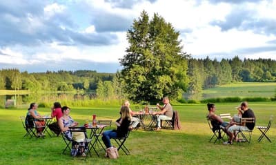 Dans le milieu du glamping, certains signes ne trompent pas, surtout quand il s’agit d’amour et de passion. Le Domaine de Balbuzard, d’entrée de jeu, envoie du love, puisqu’il se pose là, sur les rives d’un lac en forme de coeur! Si, si, je vous jure, même que Yann-Arthus Bertrand devrait passer en hélico immortaliser le Domaine pour son prochain bouquin ! Mais c’est surtout vous qui devriez y passer histoire de recharger tes batteries. A une quarantaine de kilomètres de Clermont-Ferrand, au coeur de la région bucolique et bocagère des Combrailles, Louise et Pablo, les gérants, ont confectionné un Domaine à leur image : simple, savoureux, agréable et confortable. La cuisine est généreuse – normal, tu me diras, vu qu’on est dans le Puy de Dôme. Les hébergements insolites appellent à se retrouver entre amoureux ou en famille. Que ce soit sous une yourte mongole, un tipi d’indiens, une grotte à la Bilbo le Hobbit, une roulotte bohème ou des bulles gonflables au toit transparent, on n’a qu’une envie : célébrer la nature avec les gens qu’on aime, à commencer par les petites fleurs qui s’échappent entre les orteils, jusqu’aux étoiles qui brillent dans le ciel clair d’une nuit d’été… Que de l’amour, on vous dit !