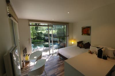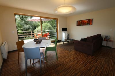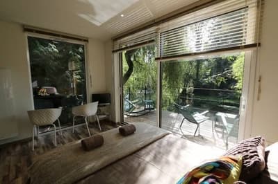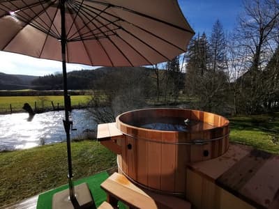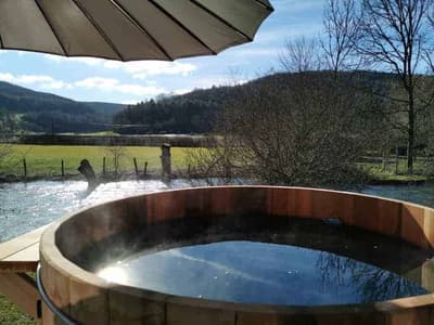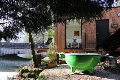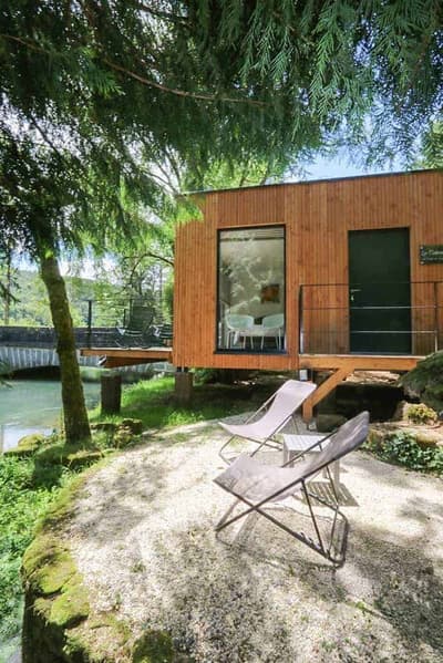 Une adresse remarquable en bord de rivière où il fait bon se détendre dans deux logements design haut de gamme en bois. Au plus près de la nature, profitez de cette belle ambiance romantique pour ralentir le rythme. Spa privatif écologique, bain nordique, séances de yoga et massages shiatsu ou californien vous invitent à la détente.