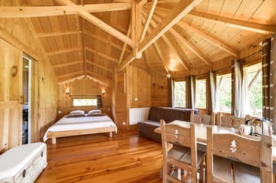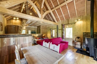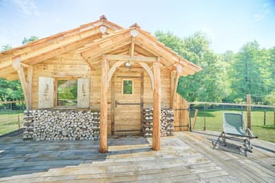 A 15 min de Besançon, des chalets chics, confortables et originaux dans 65 hectares de champs et forêts. Le tout avec rivière. Une adresse parfaite pour une robinsonnade enchantée !