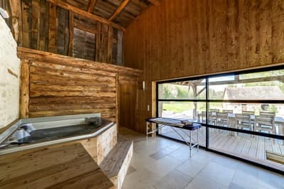 Doux doux, on est dans le Doubs ! On passe un pont en bois surplombant un joli cours d’eau, la Corcelle, à l’ombre d'arbres gigantesques et on se gare devant le bâtiment de l’accueil. A un quart d’heure à peine de Besançon, nous voici perdu en pleine nature au milieu des daims et des belles vaches salers aux cornes en forme de lyre. Loin de tout, dans le beau Doubs ! Un vaste bassin naturel encerclé de joncs et d’iris trône à l’entrée. On rejoint à pied un des sept hébergements insolites, spacieux chalets en bois totalement enfouis dans la forêt, dans des bosquets d'acacias ou de tilleuls. Les cabanes ont l’air de sortir de contes de fées, ravissantes avec des guirlandes, des arches, des tas de bûches, des parois en tavaillons ; et confortables, avec ça ! Quand on arrive la nuit, un feu brûle dans le poêle à bois et l'eau du bain nordique sur la terrasse est à 37 degrés. Le panier du dîner regorge de délices, terrine à l’ancienne, pétillant, légumes du jardin. En plus des cabanes, deux chambres plus classiques sont aménagées dans l’ancienne bergerie. La propriété de 65 hectares, soit 1 km sur 650 mètres, abrite un enclos d’une vingtaine de daims et un élevage de vaches salers et toute une forêt à explorer. Les hôtes sont très accueillants, leur chat aussi qui au matin si vous n’êtes pas trop loin va venir inspecter votre aménagement.