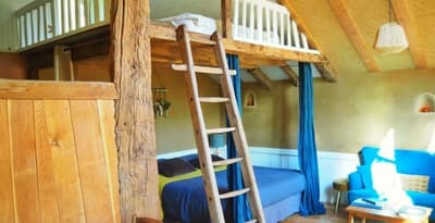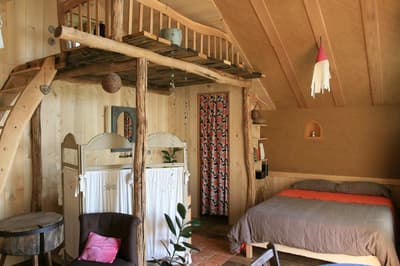 Difficile de faire plus écologique que La Belle Verte, dont le nom est d’ailleurs tout un programme. Arborant l’Ecolabel Européen, cette chambre d’hôte et gîte écologique d’Ille-et-Vilaine se trouve aux portes de la Bretagne. Ce n’est pas la Bretagne de l’océan, des phares et des criques, mais la Bretagne authentique, de l’intérieur des terres, celle des légendes de la forêt de Brocéliande et de Merlin l’Enchanteur ! Installé dans le village de Saint-M'Hervé, dans le pays de Vitré entre Rennes et Laval, le domaine vous accueille avec son mouton, ses six poules, sa chèvre et ses quatre chats. Ces hébergements ont été conçus afin de réduire au maximum l’empreinte écologique. Ecolodge sous les pommiers, dans la prairie ou Tiny House, à vous de choisir votre logis, sachant que dans tous les cas, il sera écolo ! Ici, on mange bio et local, de bons petits plats à réchauffer et à savourer dans la terrasse de votre logement insolite. Une expérience parfaite pour les familles, entre balades à dos d’âne, chasses au trésor, ateliers cuisine et bain nordique sous les étoiles !