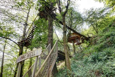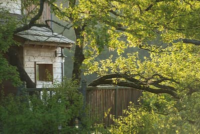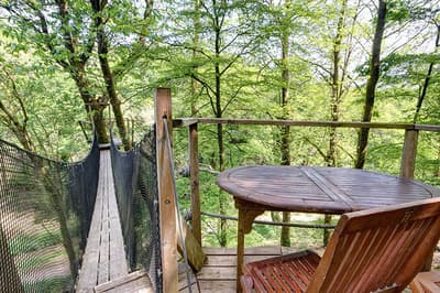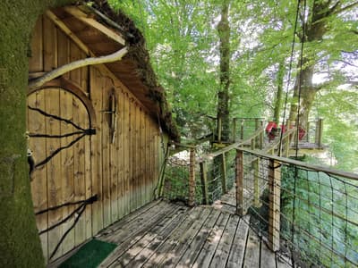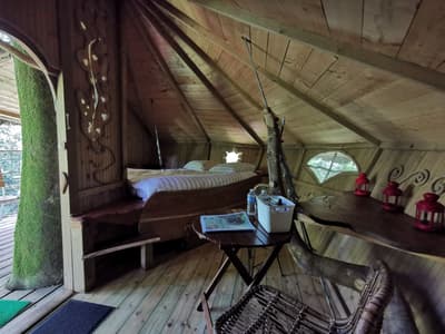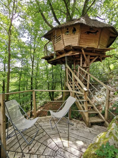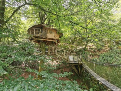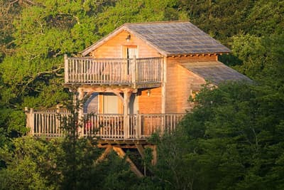 Direction la Bretagne ! Dans le centre du Morbihan, 25 hectares de prairies et de bois vallonnés, irrigués par un petit ruisseau, abritent le fief de la famille Jouanno. Les enfants ont essaimé autour de la ferme du grand-père, de ses dépendances, et d’une chaumière du XIXème siècle, des hébergements insolites de toute beauté. Souvent un membre de la famille, Jo ou Delphine, accompagne l’arrivant en voiture électrique jusqu’à son logis. L’occasion de se rincer l’œil de jolis chemins creux, de prairies où galopent des chevaux, de sous-bois dignes des elfes. Pas mal d’activités retiennent les clients sur place : caresse aux animaux, crapahut dans un grand filet de trampoline, repas aux bougies dans la cabane. A pied ou à vélo, le long du ruisseau qui parcourt la forêt, on découvre aussi deux étangs. L’espace bien-être, le spa avec jacuzzi, la piscine couverte, le sauna et le salon de massage font d’un passage à Quistinic, en Bretagne Sud, une halte revigorante. Et on est à un kilomètre seulement de la paisible vallée du Blavet, de son chemin de halage, de ses villages, maisons éclusières et chapelles qui exposent chaque été de l’art contemporain.