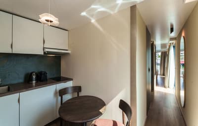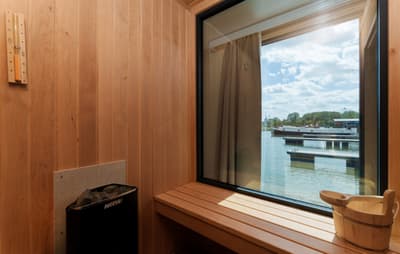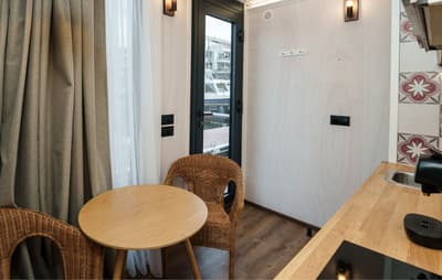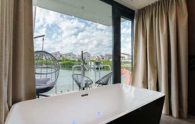 Blottie au cœur de la Marina de l’ile Adam, elle est idéale pour un séjour bien-être romantique ou un séjour ou un week-end insolite en Ile-de-France. Elle comprend un jacuzzi et un sauna pour des moments de pure détente ainsi qu’une terrasse avec fauteuil suspendu pour vous prélasser, tout en admirant le coucher de soleil. Dotée d’une cuisine équipée, vous pourrez préparer vos repas en toute intimité.