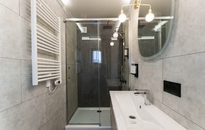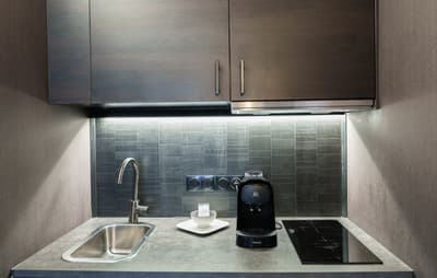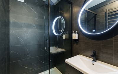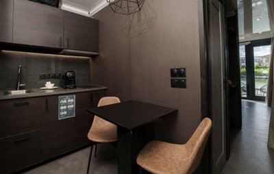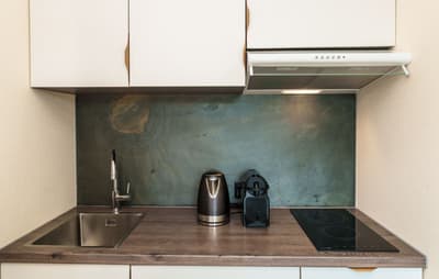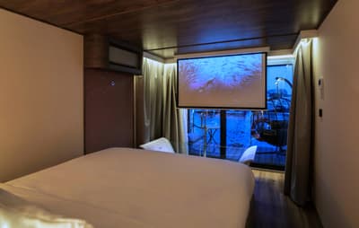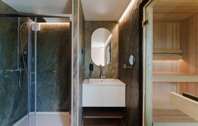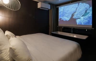 L’ensemble est dans un style soigné et contemporain avec un mobilier et des luminaires design et se complète harmonieusement dans des tons apaisants. La chambre est dotée de lits confortables et la salle de bains en marbre est équipée d’une douche spacieuse avec toutes les commodités nécessaires. Vous pourrez vous faire des soirées films grâce au home cinéma avec vidéoprojecteur. Ambiance relaxante !