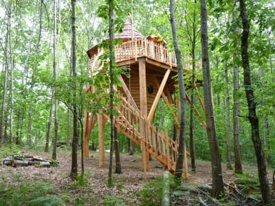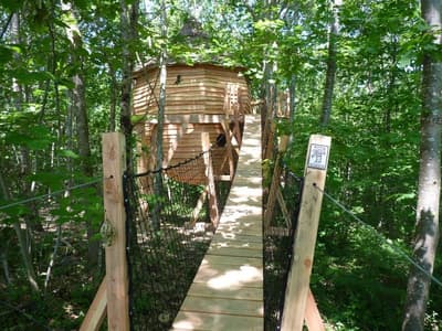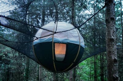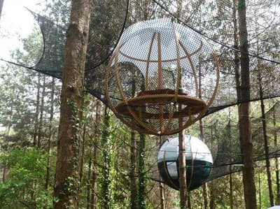 Rendez-vous au pied des Pyrénées ! C’est sur un petit coteau entre Orthez et Navarrenx, à moins d’une heure de route de Pau, que se situent les Nids du Béarn. Une forêt de 10 hectares dans les Pyrénées-Atlantiques où poussent de de drôles de structures, de jolies cabanes en bois qui se hissent vers la canopée, et des bulles suspendues entre les arbres. Ce sont en réalité des sphères recouvertes par une toile étanche et occupées par un grand lit circulaire. Ici on vient dormir presque à la belle étoile, mais avec un matelas confortable. On s’endort au son du hululement des chouettes, ou à celui du brame du cerf quand c’est la saison. Il faut avoir de l’équilibre et le pied dégourdi pour grimper sur ces filets de catamaran suspendus à plusieurs mètres de hauteur, mais on s’y fait vite, pas d’inquiétude ! Pas besoin de se cramponner, ni de faire de folles acrobaties, les structures sont parfaitement sécurisées. Il faut seulement de bonnes chaussures. Rapidement, on se jette dans les hamacs et on profite de ce balancement naturel. C’est la nature qui vous berce et vous devez apprendre à l’écouter ! Il n’y a strictement rien d’autre à faire que d’observer, écouter les chants des oiseaux et les frémissements de la forêt. Peut-être qu’avec un peu de chance, elle vous contera une histoire ? Ouvrez l’oeil, et les oreilles ;-)