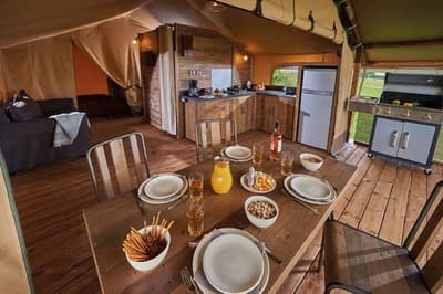L’expérience glamping idyllique sur l’île de Ré, à deux pas de la plage, presque les pieds dans le sable. Vous êtes aux Portes-en-Ré, à 200 mètres de l’océan, au milieu d’une végétation généreuse, avec ces embruns qu’on adore et ces odeurs salines. Le camping se situe à deux pas des marais salants, et du joli petit centre-ville qui accueille un petit marché sympa, les vraies vacances quoi ! Installez-vous dans votre Lodge style safari ou plus classique, et prenez le temps de vivre. En mode slow life comme le prône le domaine. On s’installe sur sa terrasse en bois cosy en attendant d’aller faire un tour en vélo avec les pistes cyclables juste à côté. Après tout, que serait un séjour à l’île de Ré sans pédaler ? Ou alors on opte pour un cours de yoga sur la plage... Le paradis, en somme ! Le soir, on se régale d’une plancha avec les légumes achetés sur le marché, et on se retrouve autour d’un feu de camp pour partager des instants inoubliables avec les autres hôtes. Un camping assez intimiste, calme, idéal pour des vacances tranquilles en famille ! Avec tout le charme de l’île de Ré. Et la dimension écologique au rendez-vous. Les logements suivent les principes de l’écoconstruction et la nature est largement préservée : vous êtes au cœur d’une réserve ornithologique !