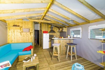Un camping tranquille à 200 mètres de la plage avec des logements en bois sympas et des cours de yoga au bord de l’océan.