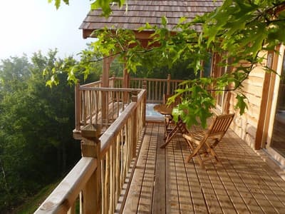 Besoin d’un séjour au calme qui change des classiques chambres d’hôtes ? Le domaine Les Insolites du Périgord vous propose deux hébergements atypiques si vous souhaitez passer du bon temps dans le Périgord noir. Installées dans une belle propriété, deux cabanes avec spa privatif attendent couple et tribu de 4 à 5 personnes. À vous de choisir l’ambiance que vous recherchez ! Que vous souhaitiez côtoyer la cime des arbres ou plonger dans l’univers magique des Hobbits, les deux choix sont possibles ! Cathy et Jean-Yves ont mis beaucoup de cœur à concevoir ces deux logements insolites installés en lisière de forêt et à l’abri des regards. Depuis votre spa, vous pourrez profiter de la nature environnante pour vous détendre. Le soir, le couple fait table d’hôtes sur réservation et le matin de délicieux petits-déjeuners vous attendront ! Ouvert toute l’année, Les Insolites du Périgord met également à disposition de ses hôtes une piscine aux beaux jours avec transats et parasols ainsi que des jeux de plein air pour les enfants. Marre du farniente ? Louez un VTT et partez à la découverte de la Dordogne et des collines du Sarladais ! Prendre la voiture pour quelques kilomètres peut être aussi une très bonne idée puisque Sarlat, Rocamadour et le site de Lascaux sont voisins de cette adresse. Vous l’aurez compris que vous veniez à deux ou en famille, détente, bien-être et trésors locaux seront au rendez-vous lors d’un séjour ici !