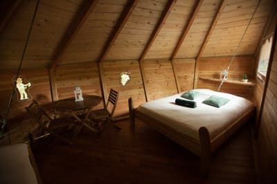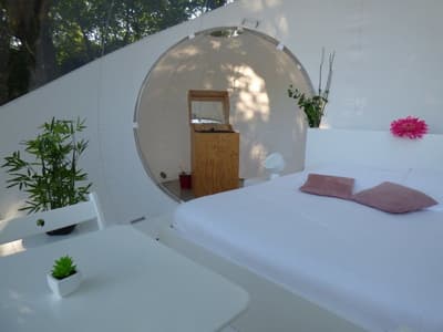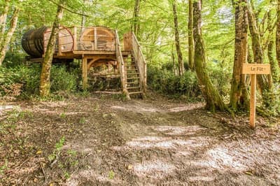 C’est l’histoire de deux frères ! Fabien et Gabriel Bardinet ont décidé de faire du domaine familial un terrain de jeux et d’aventures. De leur imagination sont nées des cabanes en bois, des bulles transparentes et des fûts dans lesquels on peut dormir, si si ! Une super roulotte et des tentes suspendues complètent cet espace de liberté, entre vignes et forêt. La propriété est située entre Bordeaux et Saint-Émilion. L’emplacement est stratégique si vous voulez découvrir ces deux villes, le vignoble et toute la région que l’on appelle l’Entre-deux-Mers. En clair, c’est tout ce qui se situe entre la Dordogne et la Garonne. Il ya plein de petits villages pittoresques, de bastides médiévales et de châteaux légendaires. Le Domaine de La Romaningue justement, était une commanderie de l’ordre des templiers au 16ème siècle. Mais après toutes ces visites, vous serez contents de trouver refuge dans ce parc arboré. La quiétude des lieux vous invite à flâner dans les allées, puis trinquer avec une bonne bouteille en terrasse au soleil couchant. Pour une détente absolue vous choisirez carrément l’un des chambres avec un bain nordique. Il n’y pas à dire, on sait vivre dans le bordelais. Comme le vin, vous repartirez bonifié par votre séjour sur ce joli domaine à l'ambiance paisible et relaxante.