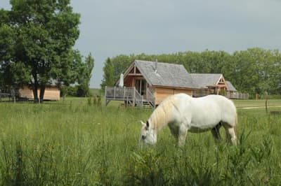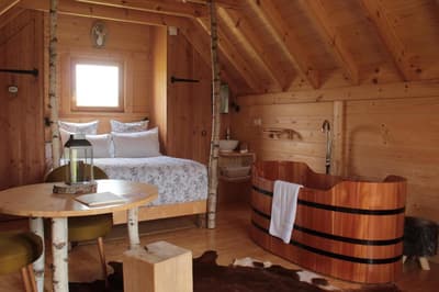 Un domaine paisible au milieu des vignes du Bordelais. Au choix : une cabane d’amoureux, une cabane familiale et un tipi au bord de l’eau ! Avec un espace bien-être chaleureux et zen.