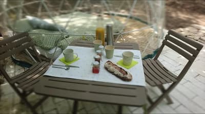 Profiter du moment présent, tout simplement : que ce soit pour une nuit, un week-end ou un plus long séjour, aux Bois de Saint Auvent on passe d’assez bons moments à deux ou en famille. À 20 minutes de Limoges, Juliana et Jean-Pierre, deux maraîchers bricoleurs de la Haute-Vienne proposent à leurs hôtes des chambres classiques, mais aussi des hébergements plus insolites comme un chalet en bois sur pilotis pour une famille ou un dôme transparent pour observer les étoiles. Avec ces deux options, le retour à la nature est certain ! Le confort sera quand même au rendez-vous puisque le couple a conçu une espace salle de bain et toilettes sèches pour ces deux logements qui sortent de l’ordinaire. Pour chiller comme il se doit, les Bois de Saint Auvent met à disposition de l’ensemble de ses hôtes une belle piscine chauffée, un jacuzzi, un bain nordique et un sauna. Un court de tennis et un étang de pêche de 3000 mètres carrés avec sa barque complètent l’offre des lieux. Un petit creux ? Ne vous en faites pas ! Un bon petit-déjeuner vous aidera à bien débuter la journée et vous pourrez réserver une place autour de la table d’hôtes de Juliana et Jean-Pierre pour le dîner. Vous trouverez dans vos assiettes de bons petits plats et des produits locaux, bien évidemment !